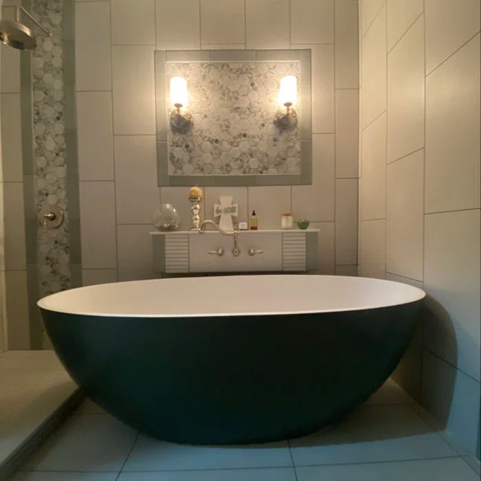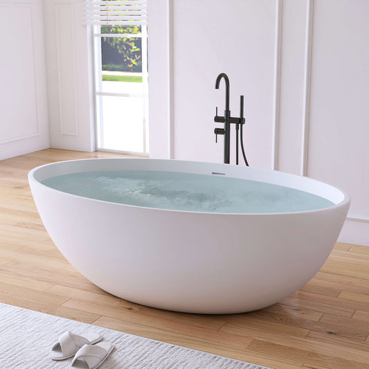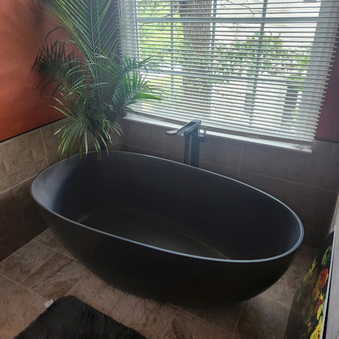 Medunjess 65" Black Oval Luxury Freestanding Solid Surface Resin Stone Soaking Tub