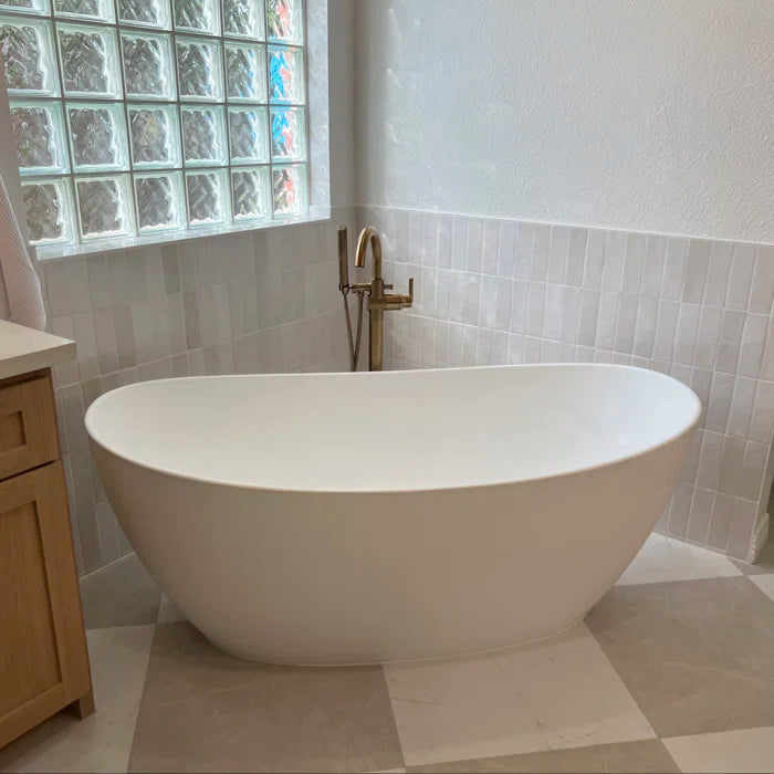 Medunjess Chelsea 59" Freestanding Tub Solid Surface Freestanding Soaking Bathtub