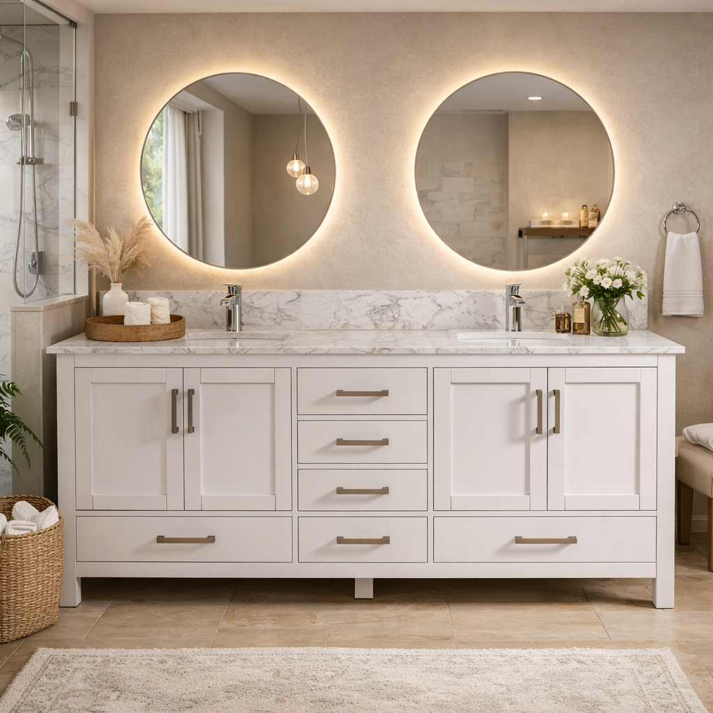 Maximize space with vanities built for practicality: deep drawers, thoughtful compartments, and sturdy construction. Each piece is engineered to optimize your space while adding a touch of understated elegance, crafted for long-term use, and styled to fit any interior aesthetic.