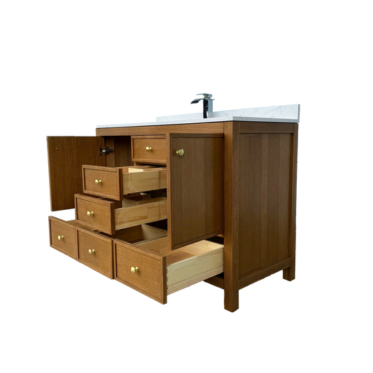 Medunjess 48" Oak Solid Wood Bathroom Vanity with Quartz Stone Top