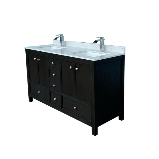Medunjess 60" Black Oak Solid Wood Bathroom Vanity with Quartz Stone Top