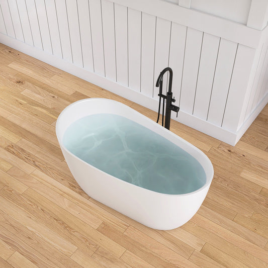Medunjess 51" Oval Solid Surface Stone Freestanding Bathtub