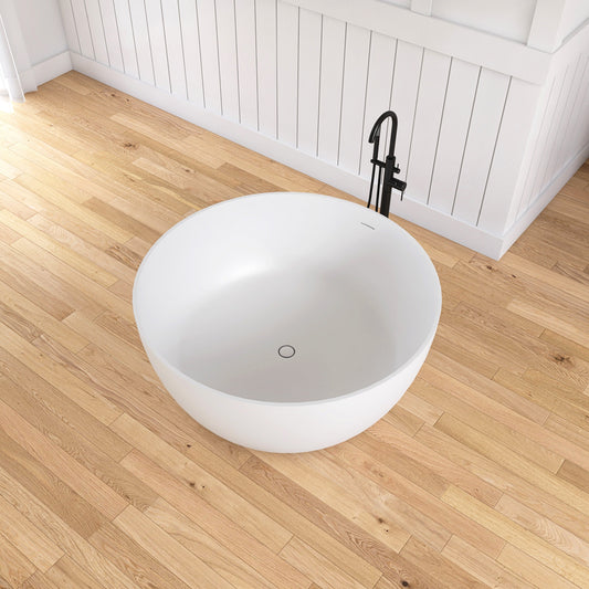 Medunjess 51" Round Solid Surface Stone Freestanding Bathtub