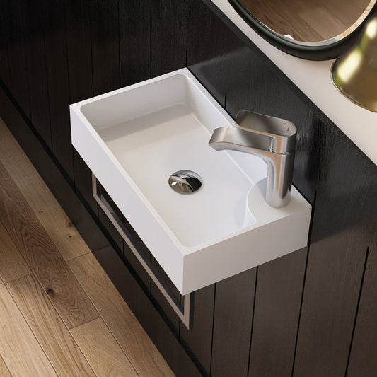 Medunjess 18'' Small Bathroom Sink Solid Surface Wall Mounted Bathroom Sink With Towel Rack