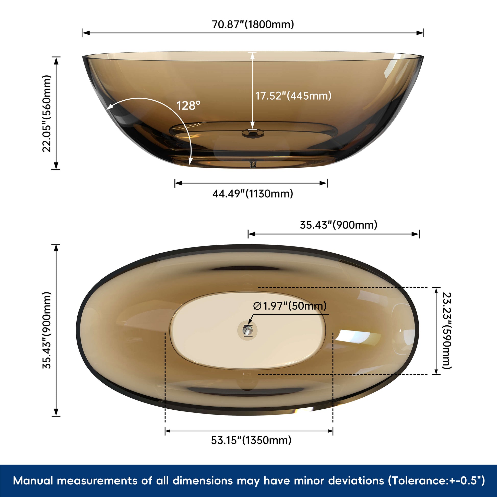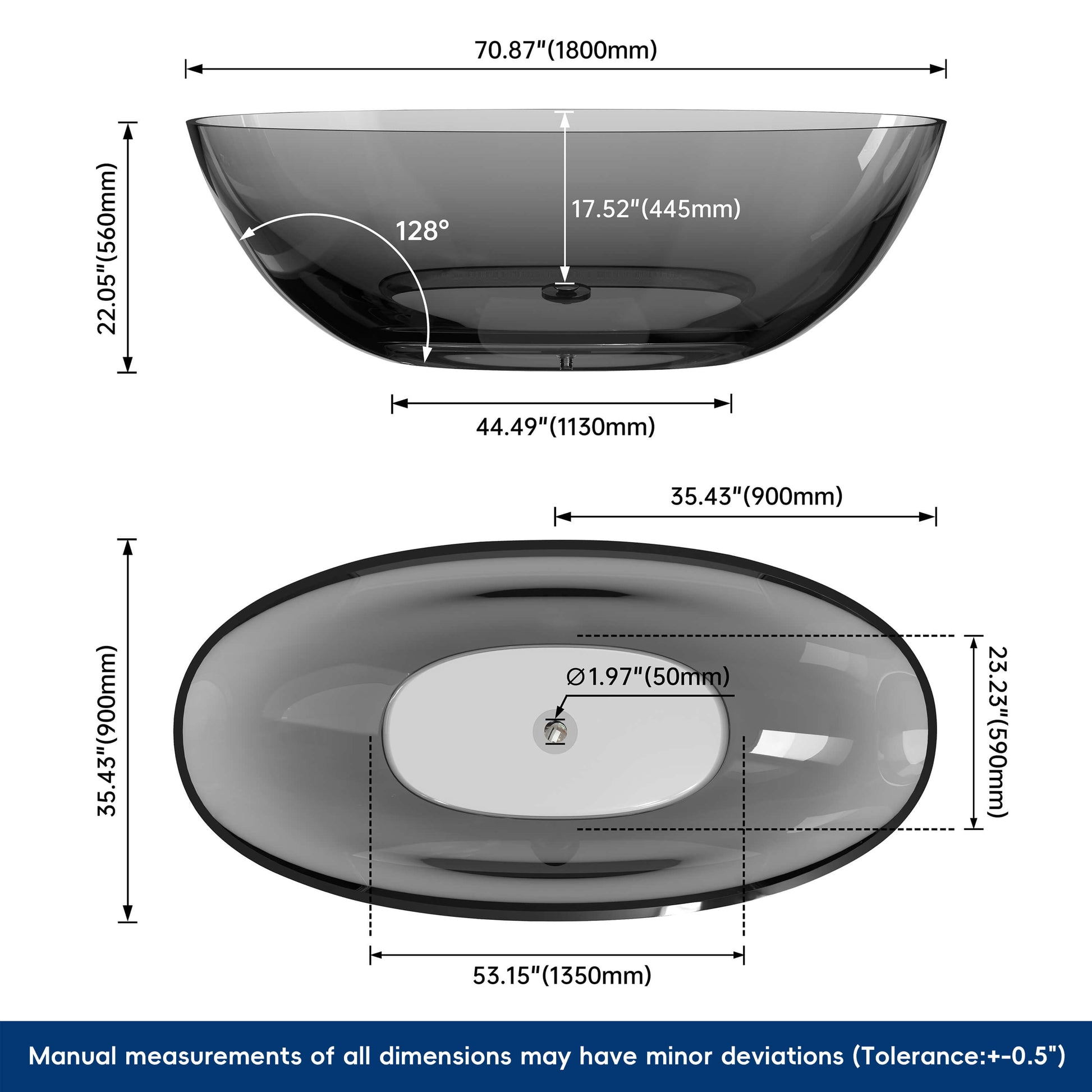 Crafted from 100% eco-friendly handmade Resin Stone, non-porous, 100% fade-resistant, natural stone feel,ensuring durability and strength while remaining non-poisonous. No worry about minor scratches or damage or stubborn stains thanks to its special repairable function. No-slip matte finish and a silky-smooth texture. With it gently sloped perfectly for reclining in its capacious 70.87-inch length, perfect for 1-2 persons bathing. Our tub conforms to the body's natural contours, Sloped lumbar support offers extra comfort, providing exceptional lumbar and head support for extended relaxation. Its excellent heat retention ensures a long, soothing soak, akin to being cocooned in luxury. Its corner-friendly design makes it ideal for both indoor and outdoor settings, Advanced lightweight pure white stone resin keeps bathwater warm and cozy, while durably resisting any scratches or staining. This freestanding tub is what bathing dreams are made of. Includes pop-up drainer, the bottom outlet is in the center, and the drain hose (not included in the price)