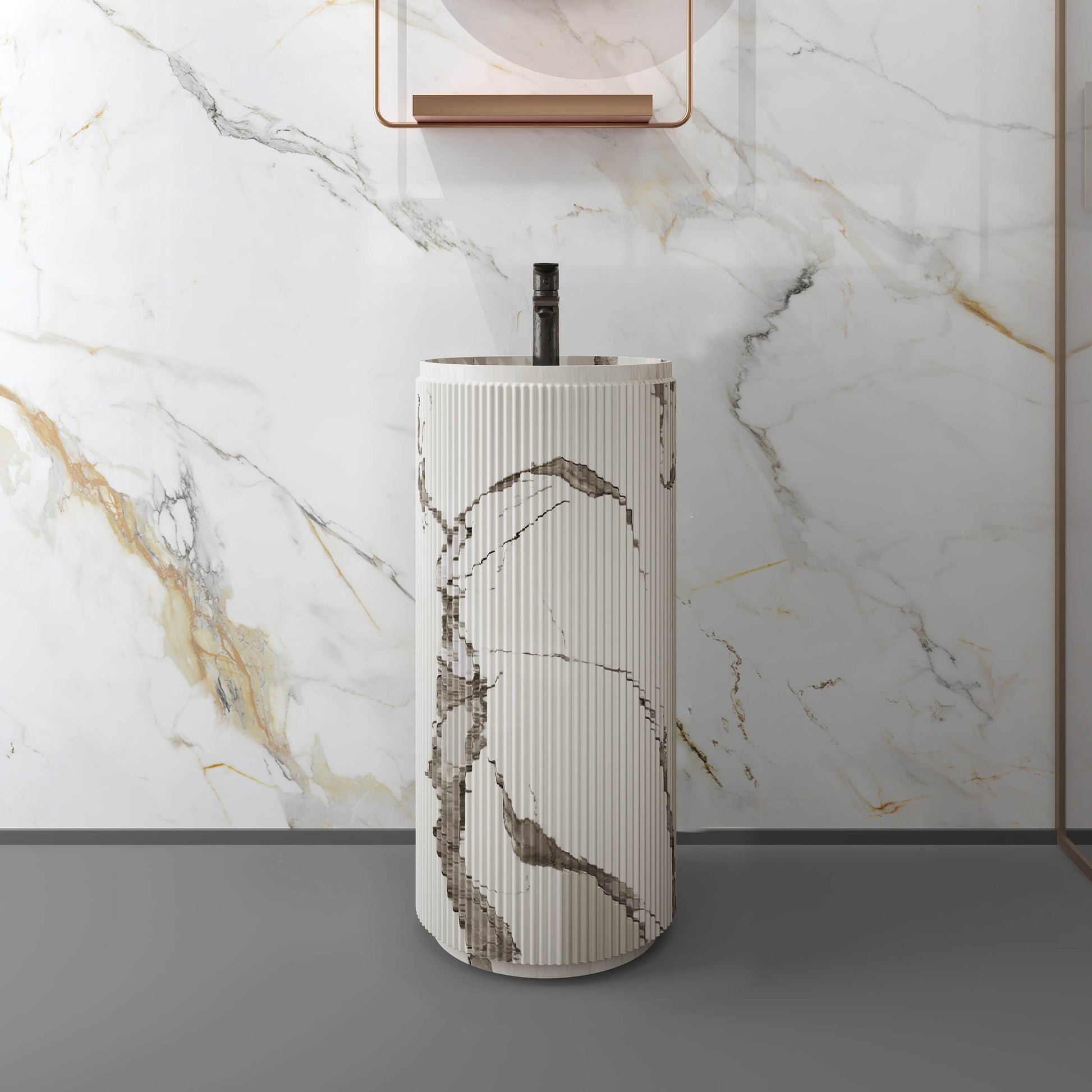 Move beyond mere functionality. This is not just a sink; it is a freestanding sculpture that commands attention. Crafted from solid terrazzo, each column is a unique testament to the beauty of natural stone and artisan craftsmanship.