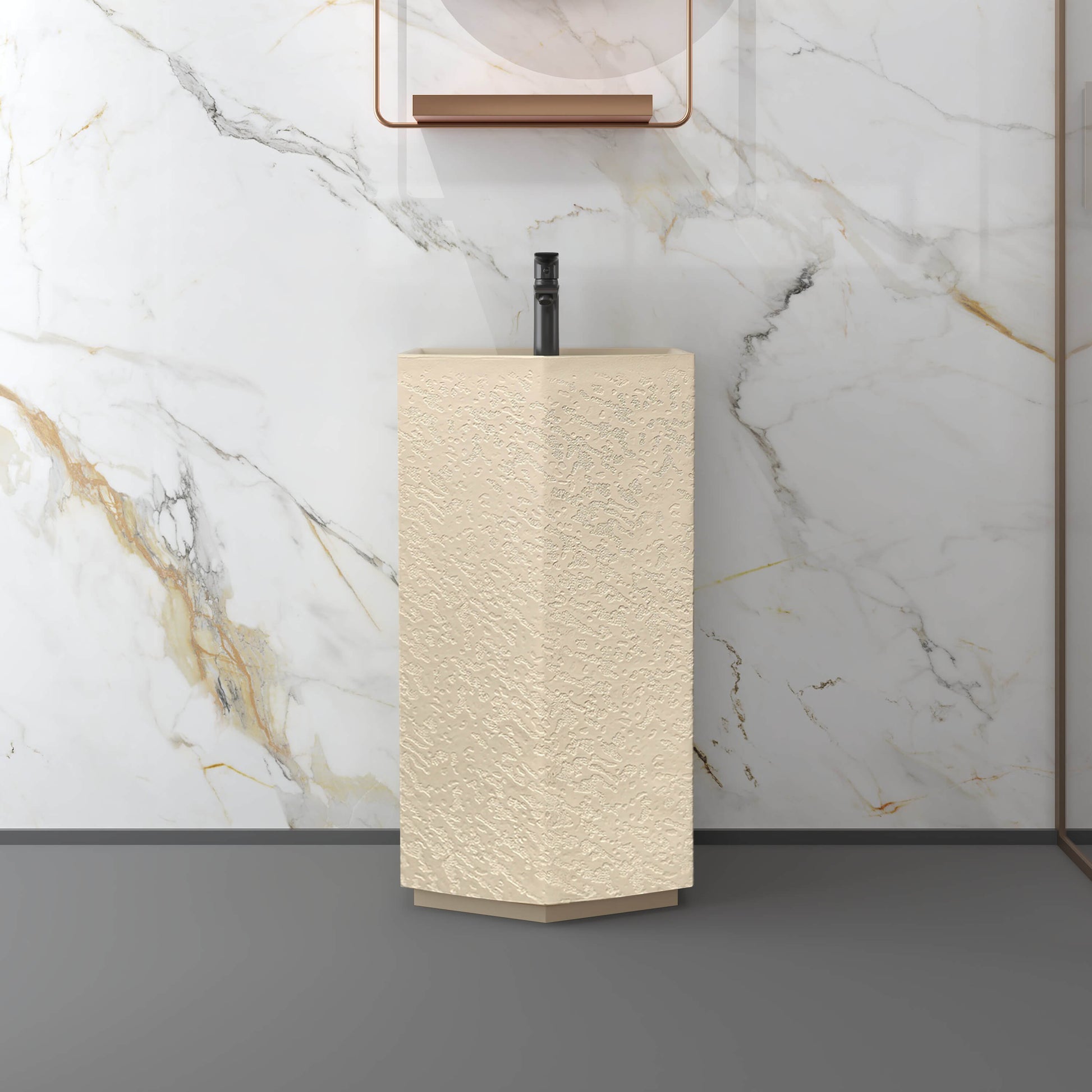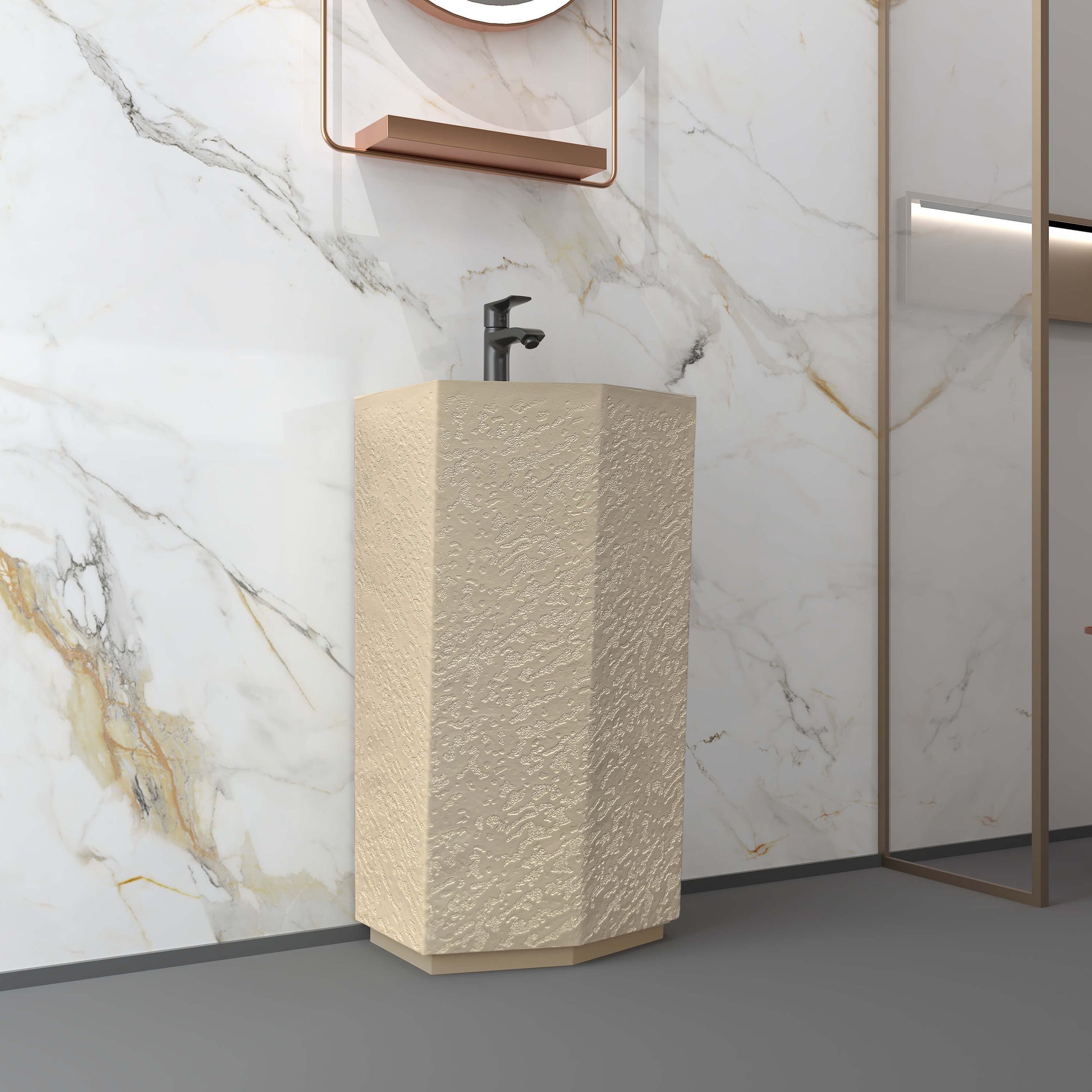 Move beyond mere functionality. This is not just a sink; it is a freestanding sculpture that commands attention. Crafted from solid terrazzo, each column is a unique testament to the beauty of natural stone and artisan craftsmanship.