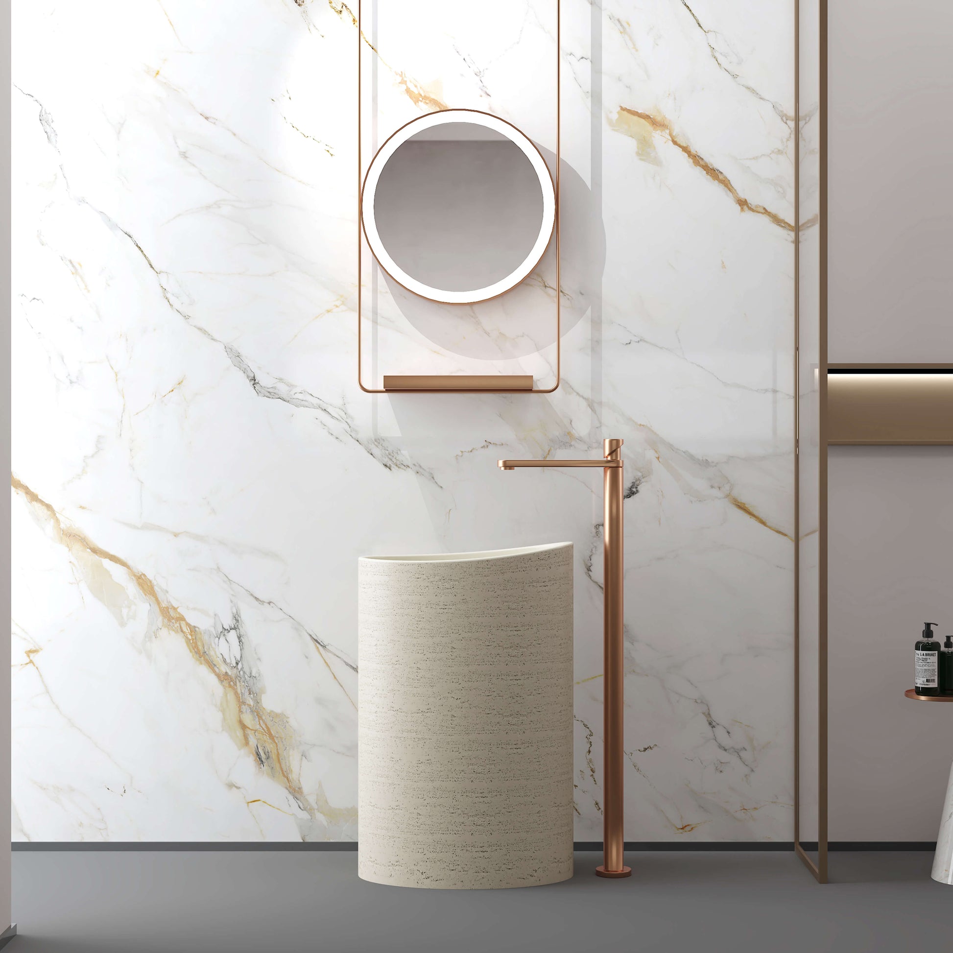 Move beyond mere functionality. This is not just a sink; it is a freestanding sculpture that commands attention. Crafted from solid terrazzo, each column is a unique testament to the beauty of natural stone and artisan craftsmanship.