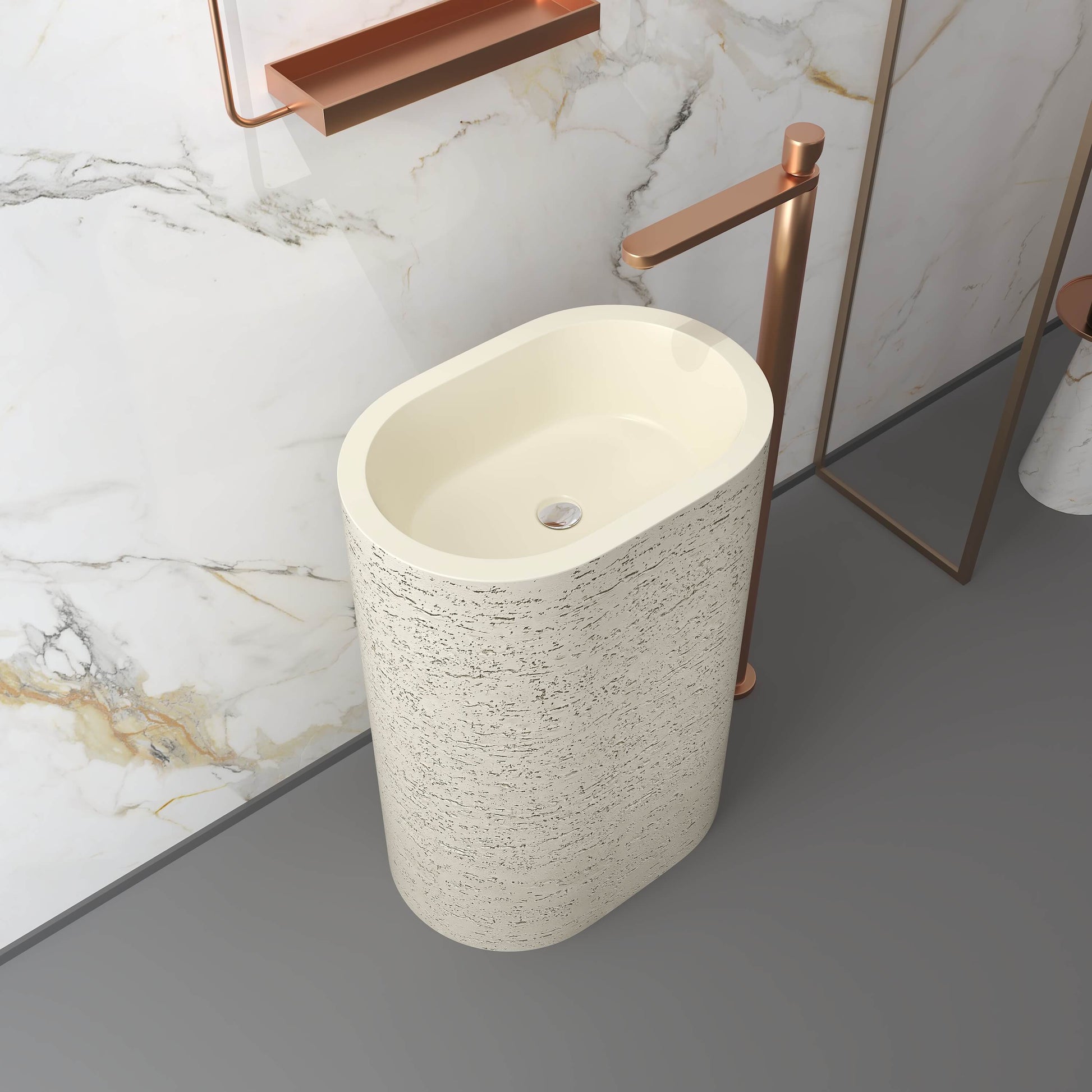 Move beyond mere functionality. This is not just a sink; it is a freestanding sculpture that commands attention. Crafted from solid terrazzo, each column is a unique testament to the beauty of natural stone and artisan craftsmanship.