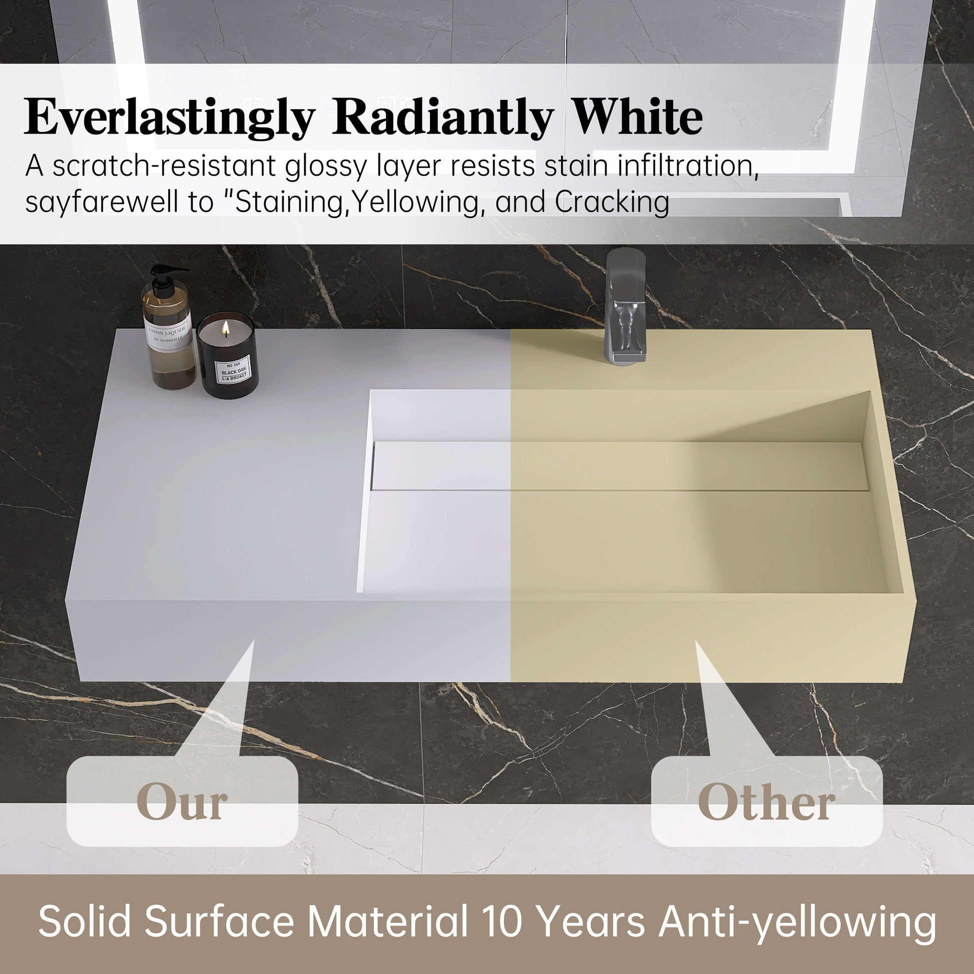 Premium, Non-Porous Material: Crafted from high-gloss ceramic/porcelain, its ultra-smooth surface is exceptionally durable, resistant to stains, and incredibly easy to clean and maintain.
