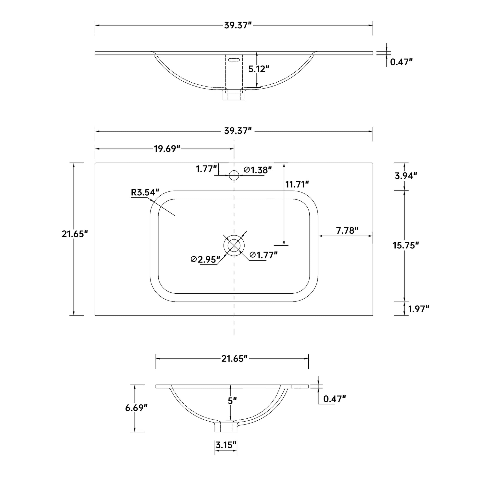 Medunjess 39'' Fjord Solid Surface Basin