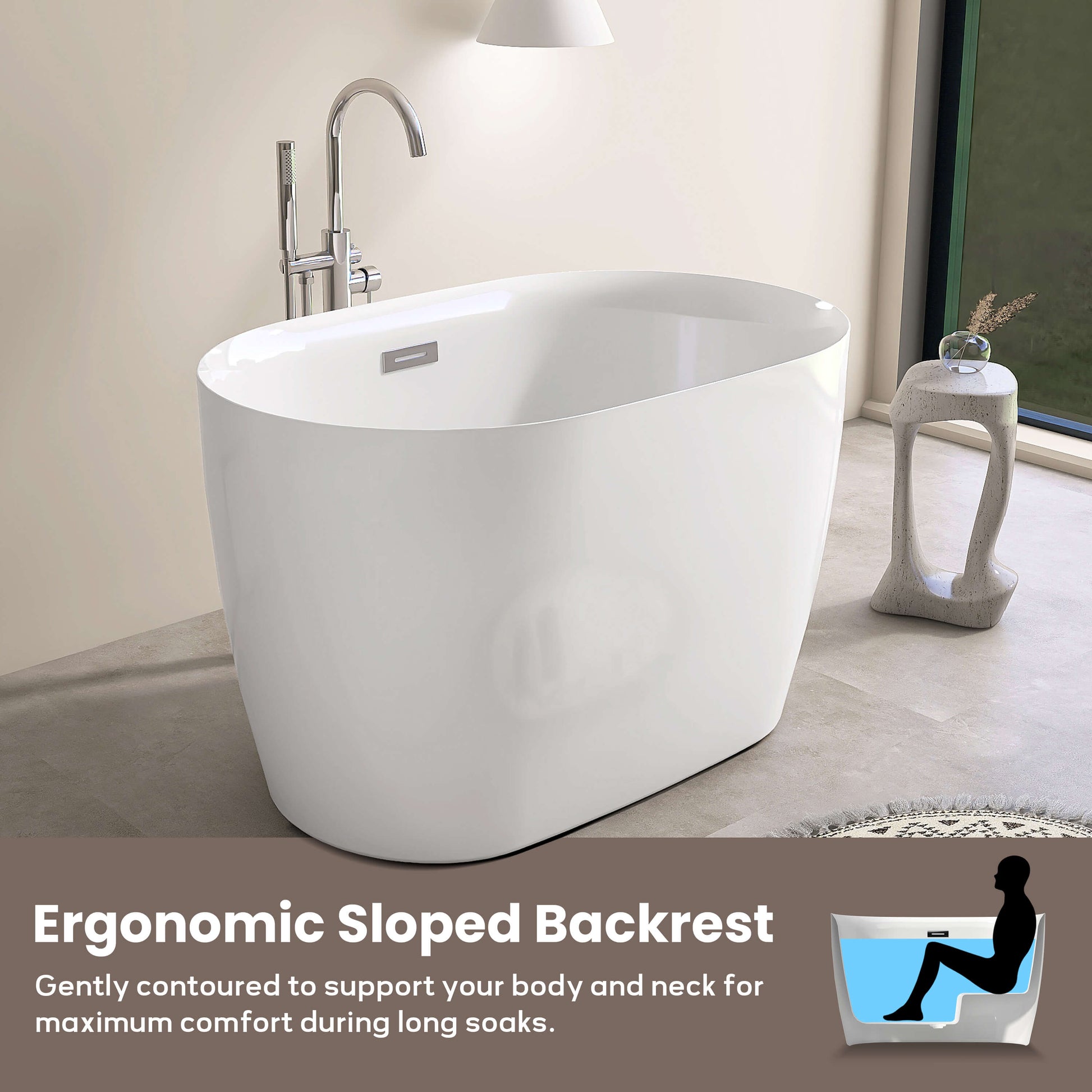 Medunjess 43” Swan Freestanding acrylic bathtub with bench