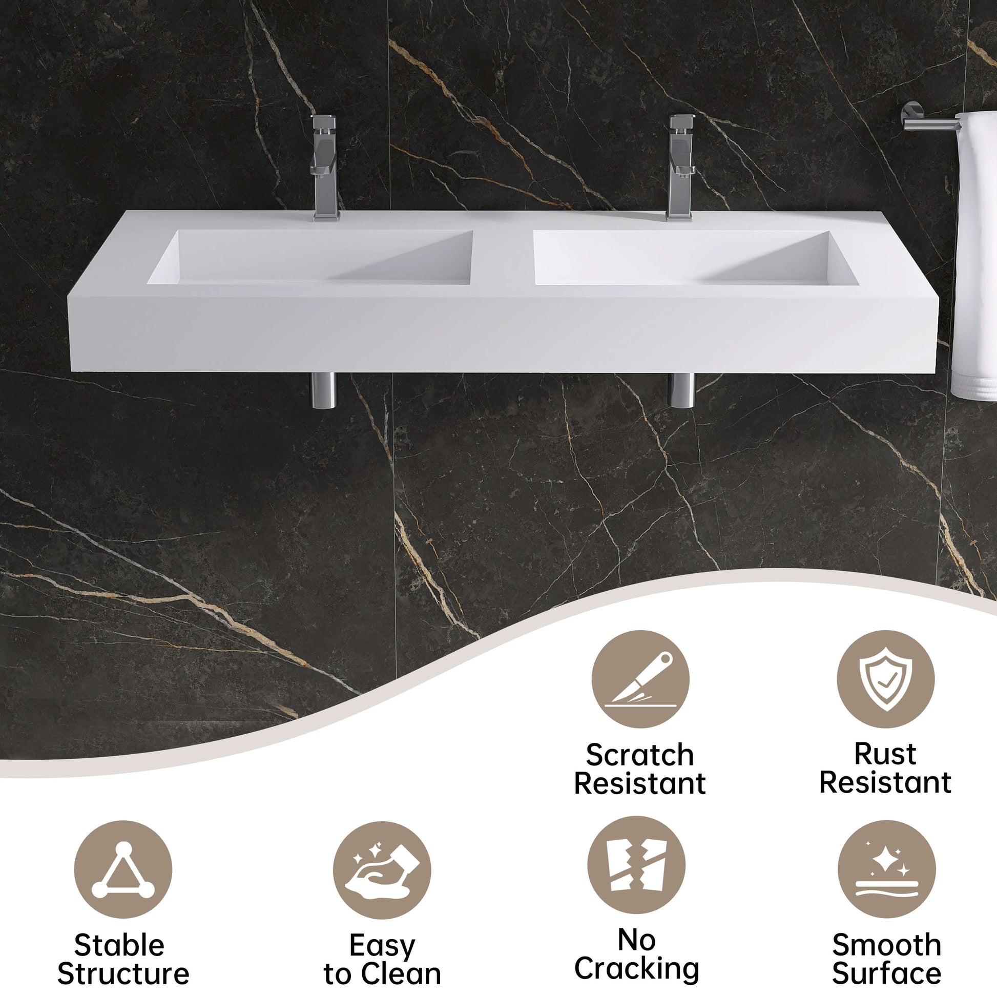 Medunjess 47'' Elytra Wall Mounted Bathroom Sink Solid Surface Sink