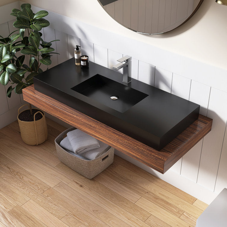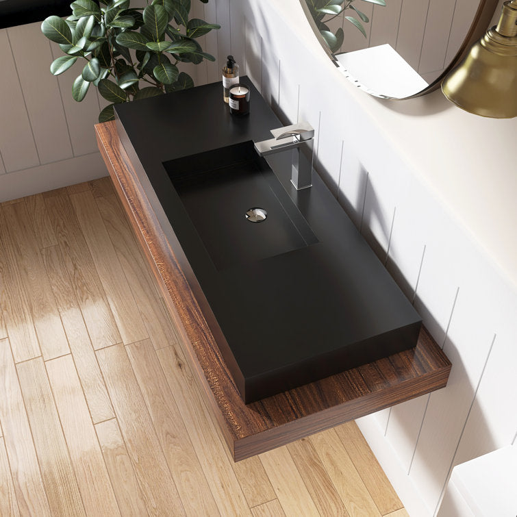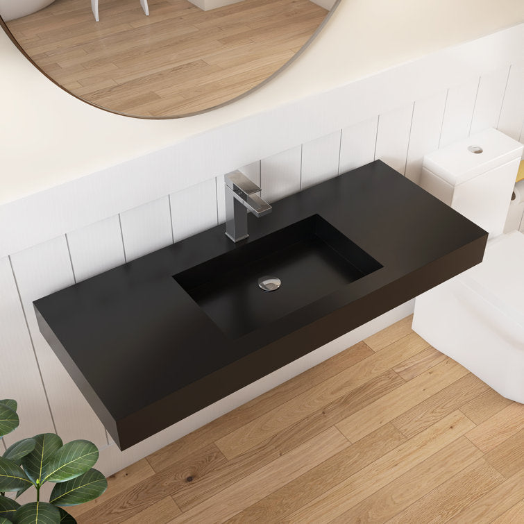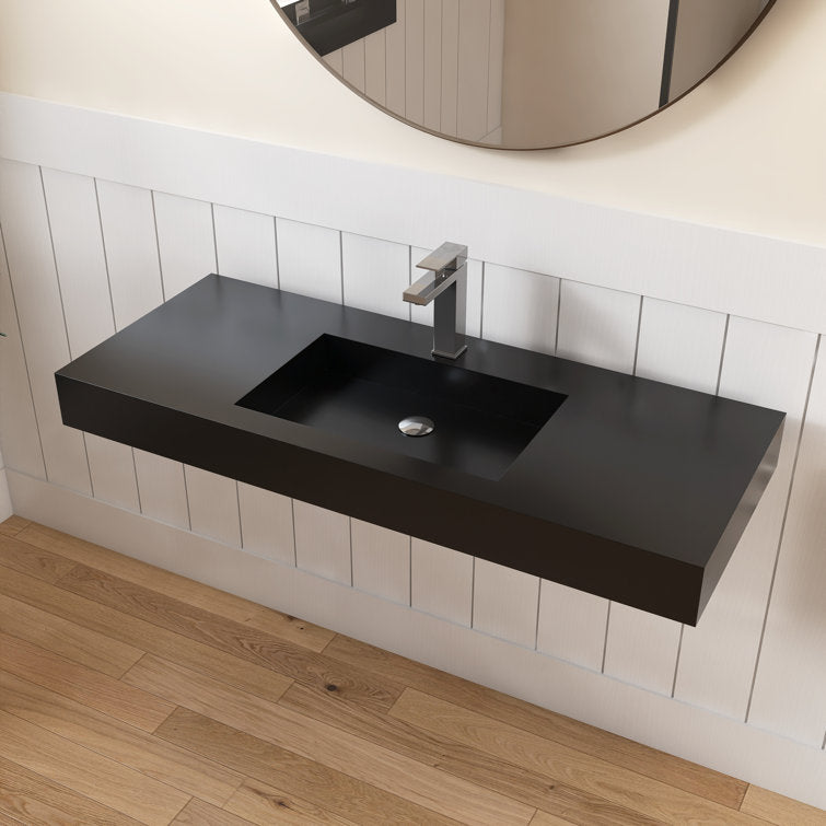 Medunjess 47'' Wall Mounted Bathroom Sink Solid Surface Vessel Sink with Faucet Hole