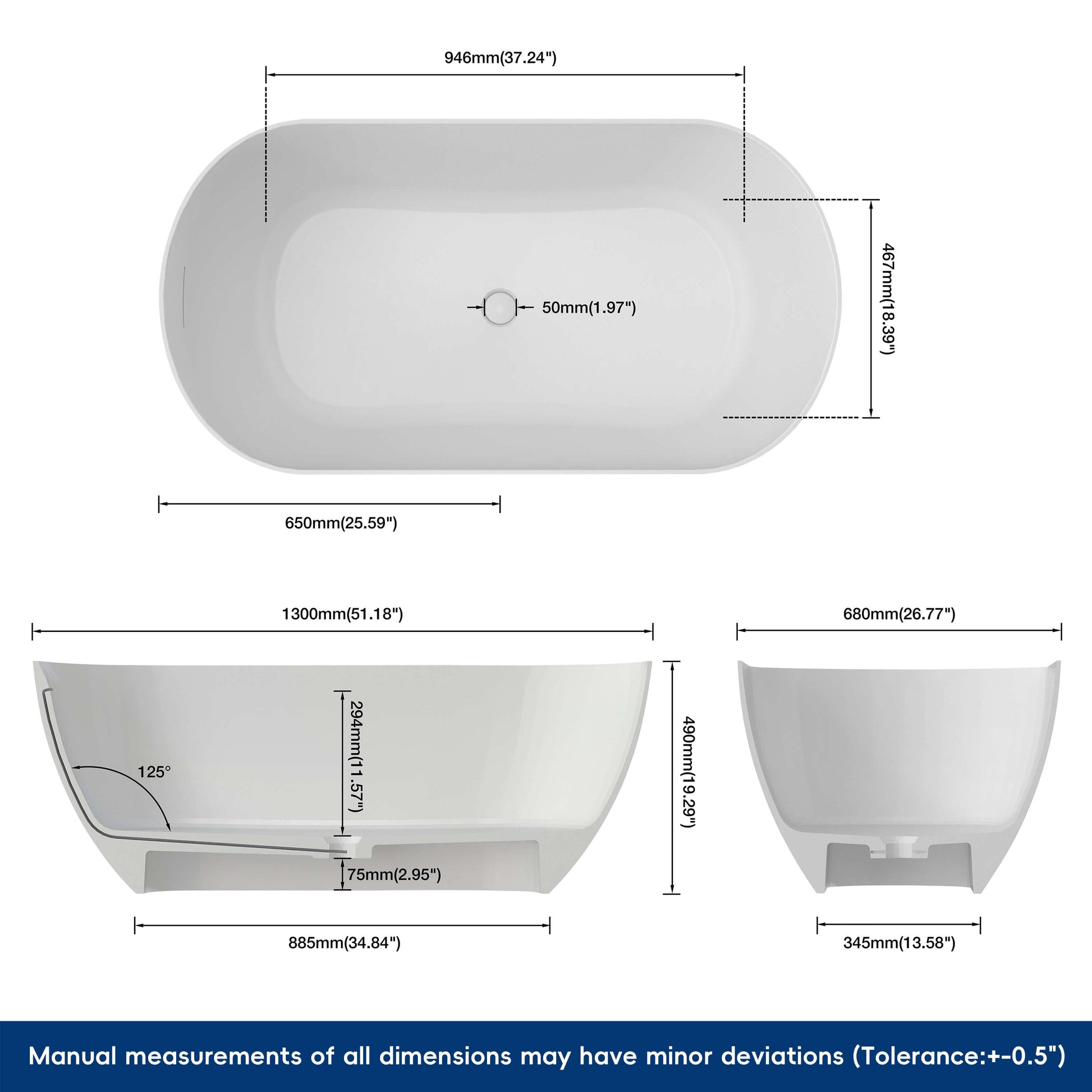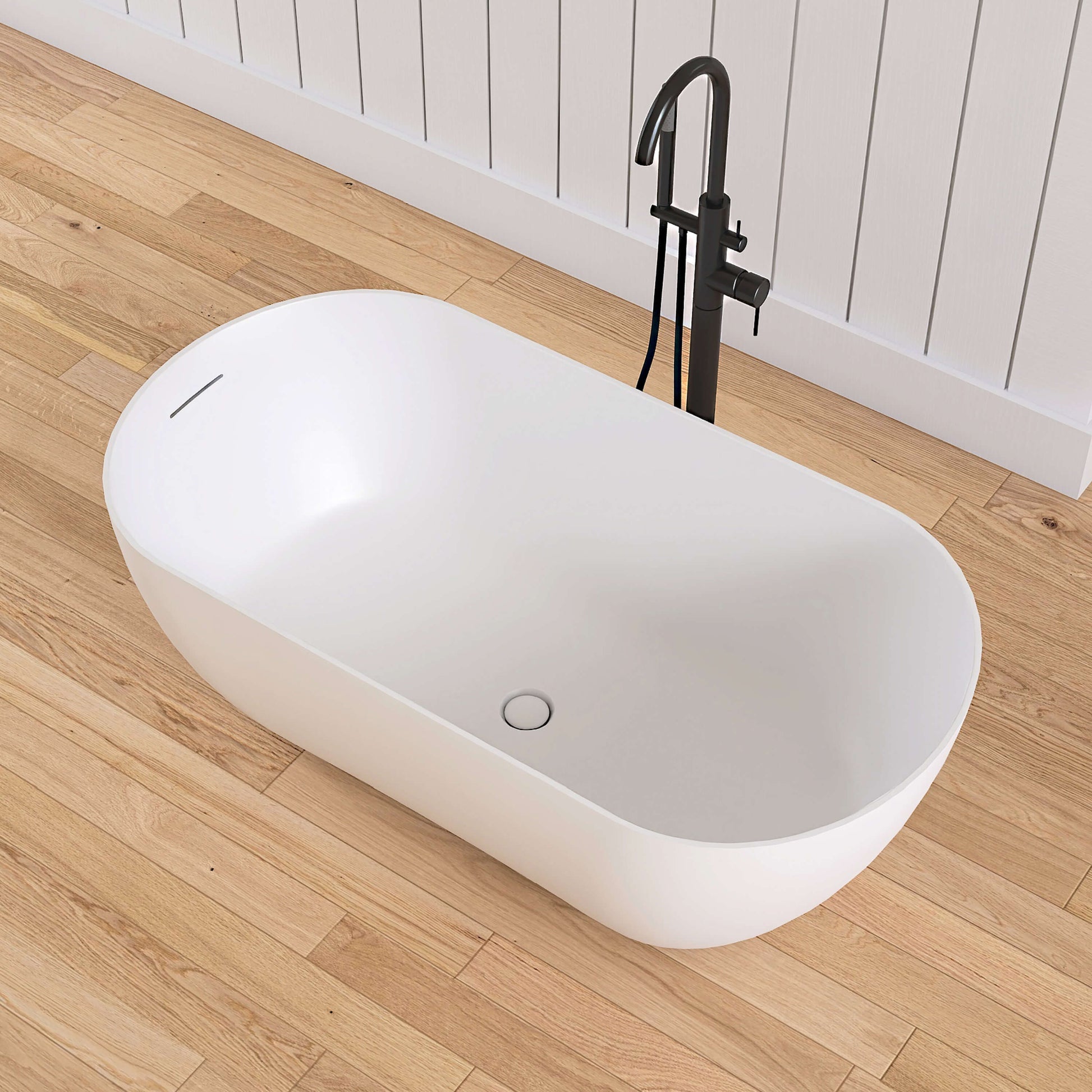 Crafted from high quality stone resin for durability and elegance, this bathtub is the finishing touch to your bathroom. The sturdy surface construction ensures that the tub is durable and elegant. The matte finish adds a modern touch to your space and enhances its appeal. Perfect for small spaces, this 59-inch bathtub combines practical functionality with sleek style. With its special repairable feature, you don't have to worry about minor scratches, damage, or stubborn stains. Our ergonomically curved tub features a sloped backrest and smooth edges that mold to your body's curves for a long soak without fatigue. The surface is finely polished for a warm, delicate touch and is non-slip, stain and heat resistant, making everyday cleaning easy and durable. Whether you're looking to create a stylish upgrade or enjoy a comfortable soaking experience, our stone resin freestanding bathtub is the perfect choice. Includes pop-up drain, but requires a separate drain hose (priced separately).