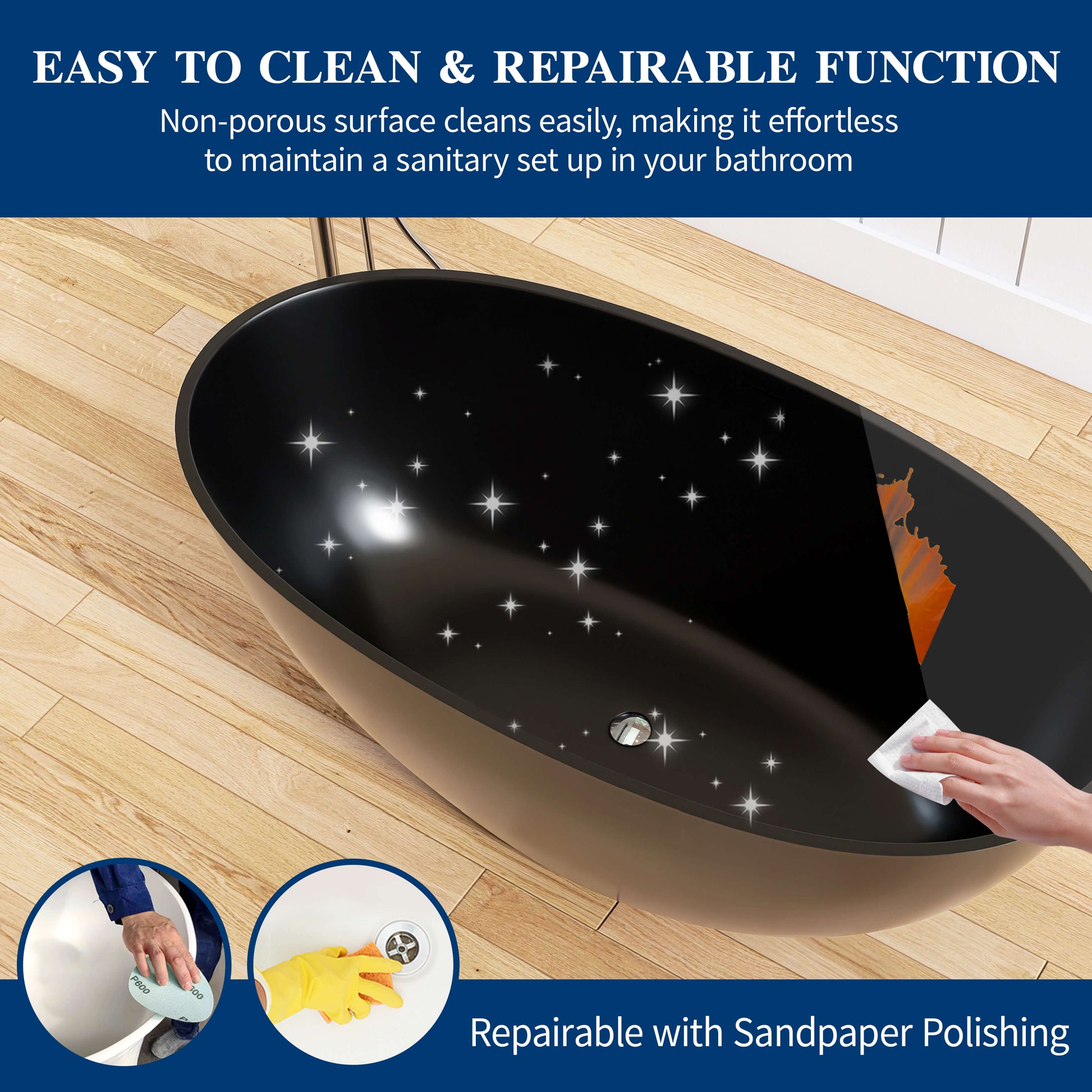 - Remarkable Durability: Special Material by the combination of stone resin, resulting in a robust, non-porous surface resistant to stains and scratches. One-piece design, flawless bathing surface, good choice for private and commercial use.