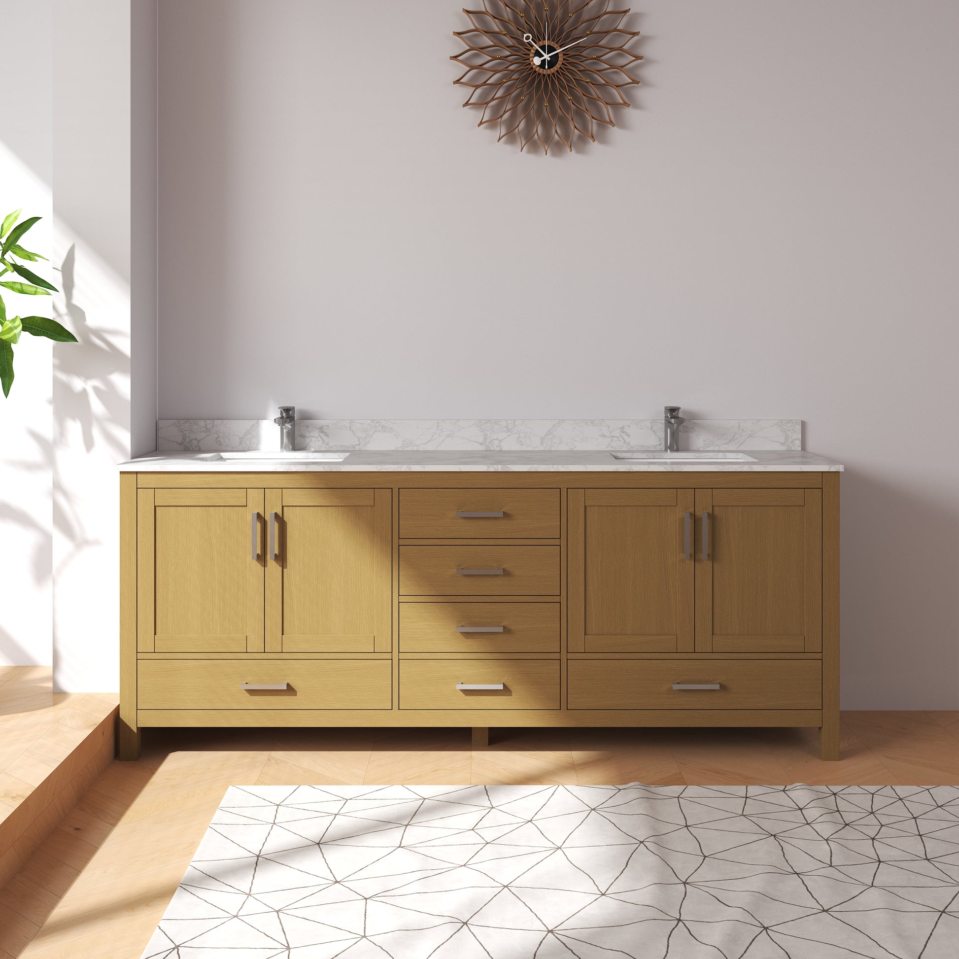 Medunjess 60" 84" Natural Wood Bathroom Vanity with Quartz Top