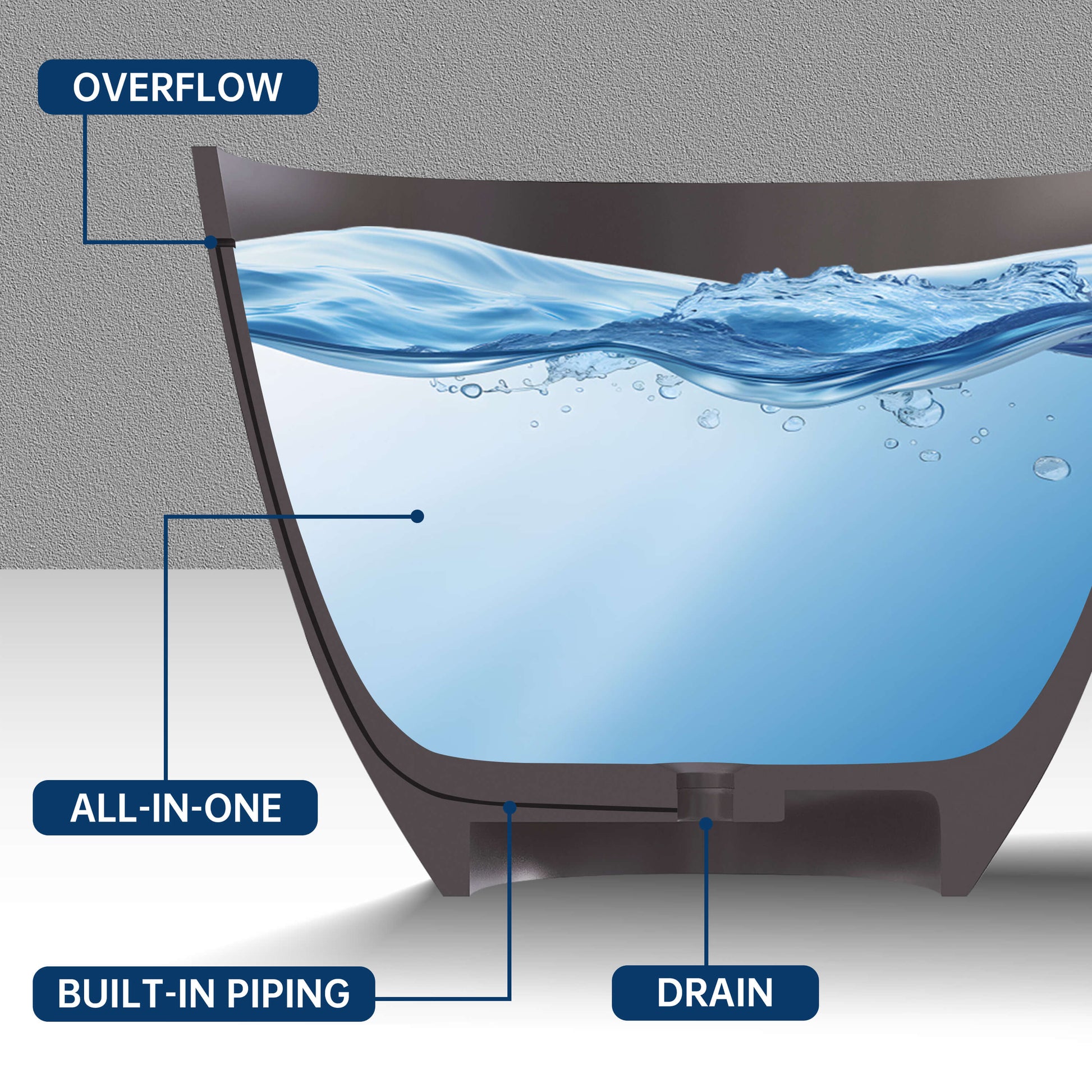 The tub provides the feel of natural stone without harmful substances. Its robust structure resists stains, scratches, and everyday wear, maintaining its elegance.