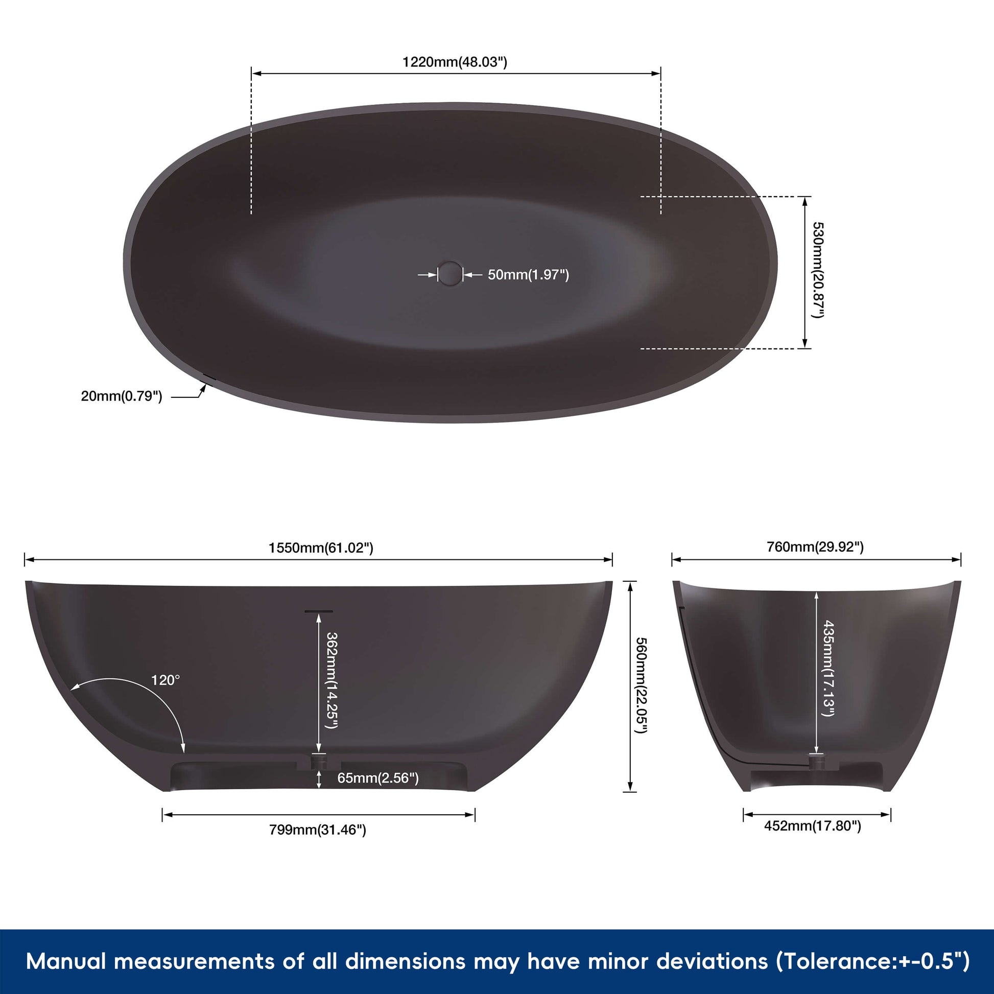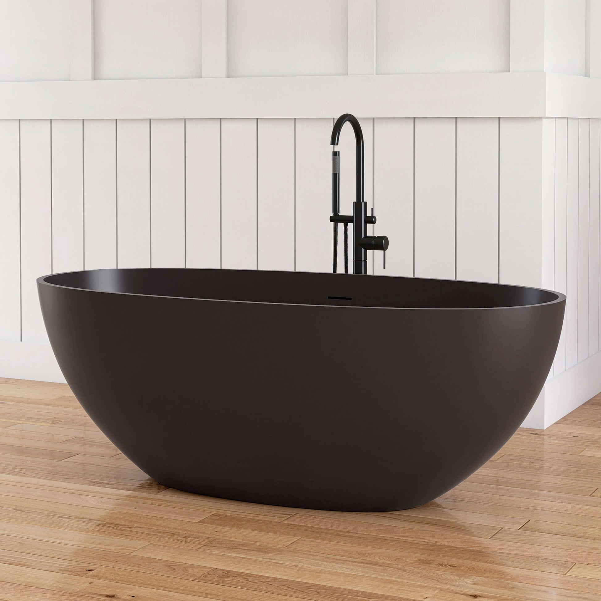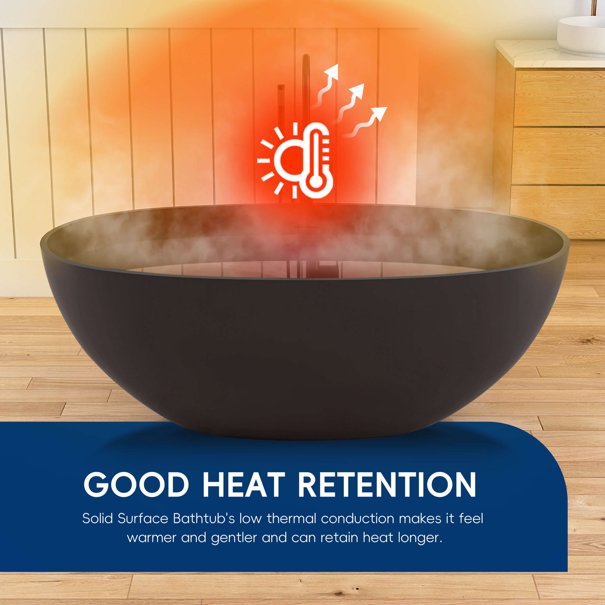 Medunjess 61'' Freestanding Soaking Solid Surface Bathtub,Brown