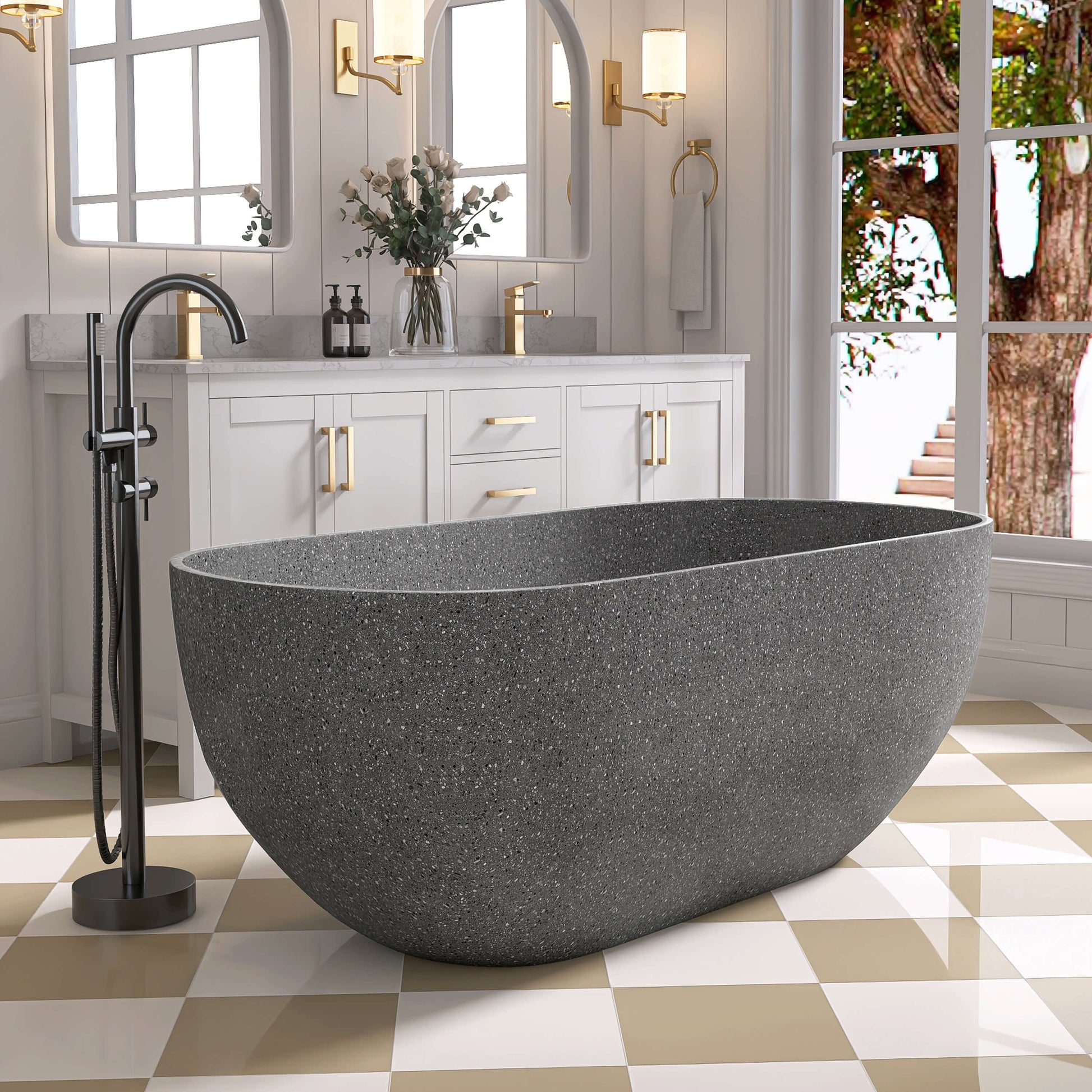 - Outstanding Modern Outlook: Terrazzo bathtubs have a unique and luxurious appearance that can add a touch of elegance to any bathroom. The embedded chips create a beautiful speckled pattern that can become a focal point of the room.