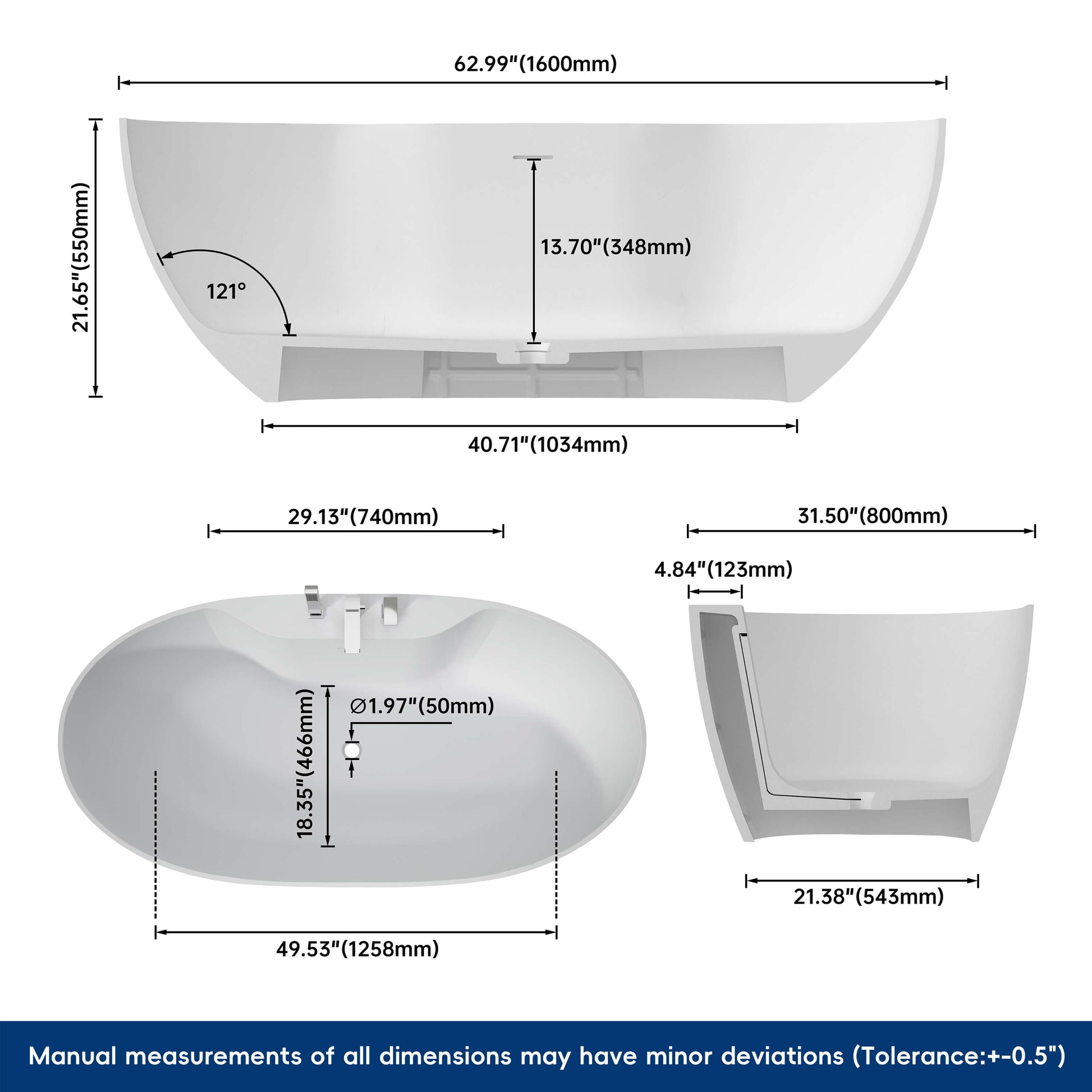 Surprisingly Warm Touch: Engineered stone feels warmer to the touch than cast iron or natural stone, providing immediate comfort as you enter the bath.