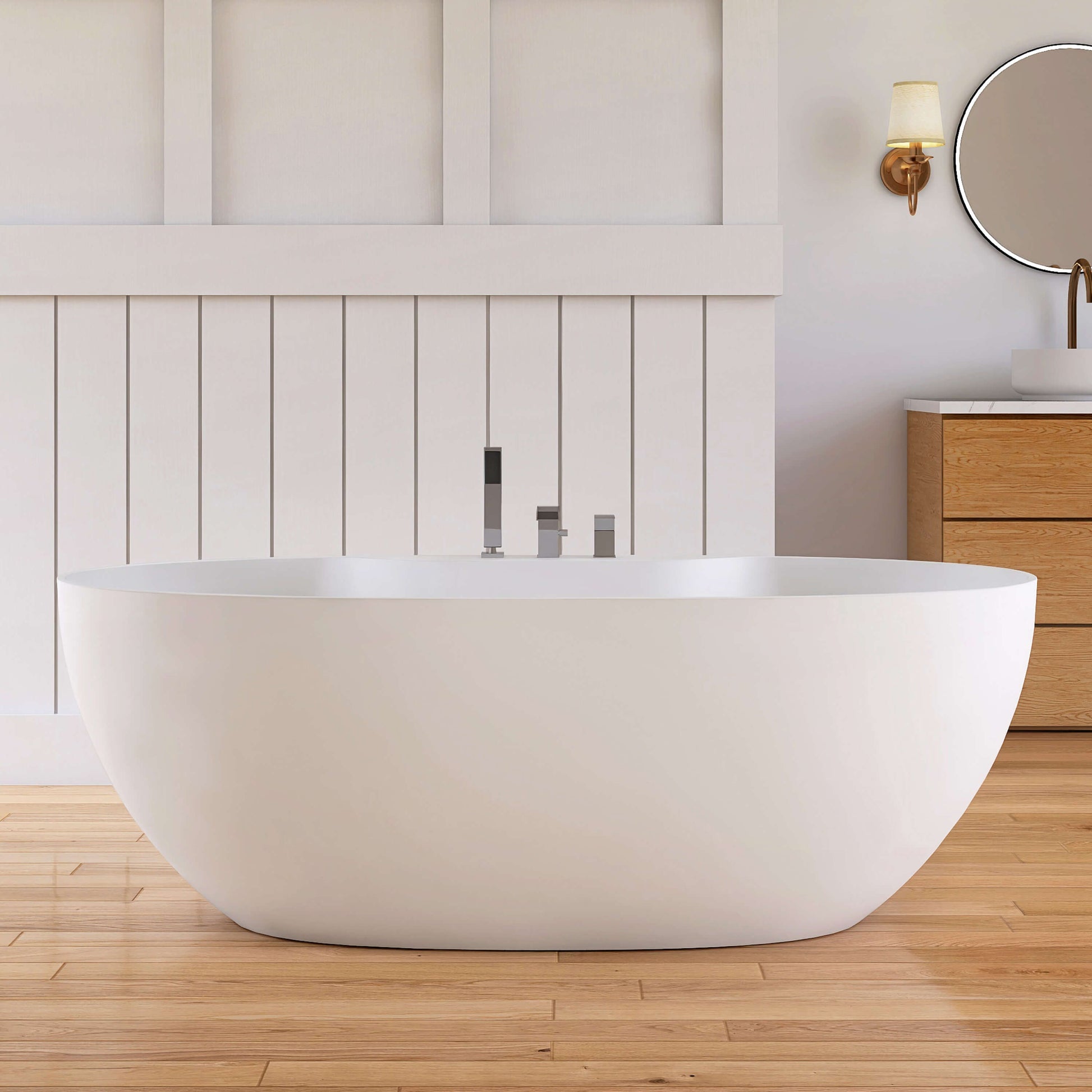 Medunjess 63'' Veridia Freestanding Bathtub Solid Surface Stone