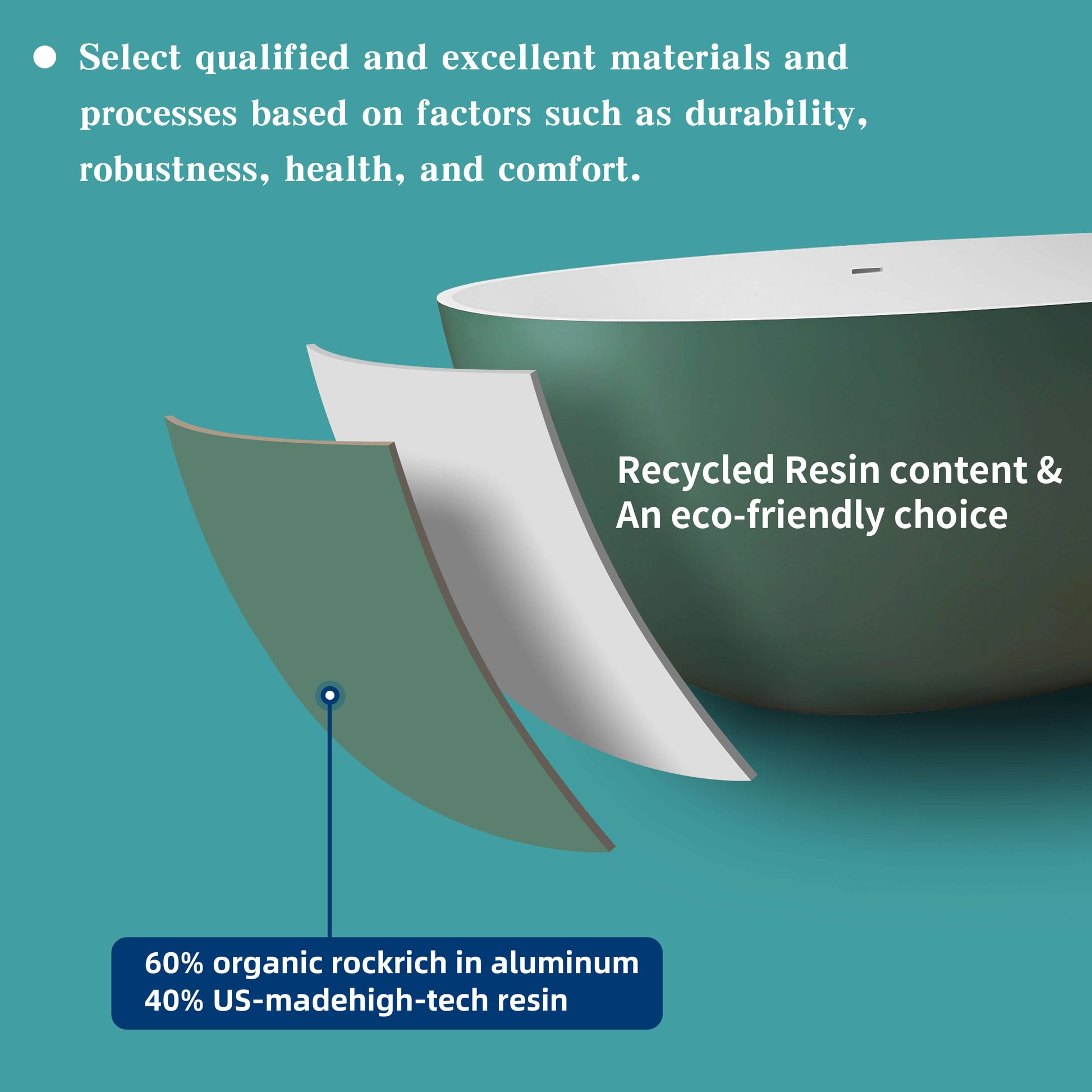- Remarkable Durability: Special Material by the combination of stone resin, resulting in a robust, non-porous surface resistant to stains and scratches. One-piece design, flawless bathing surface, good choice for private and commercial use.