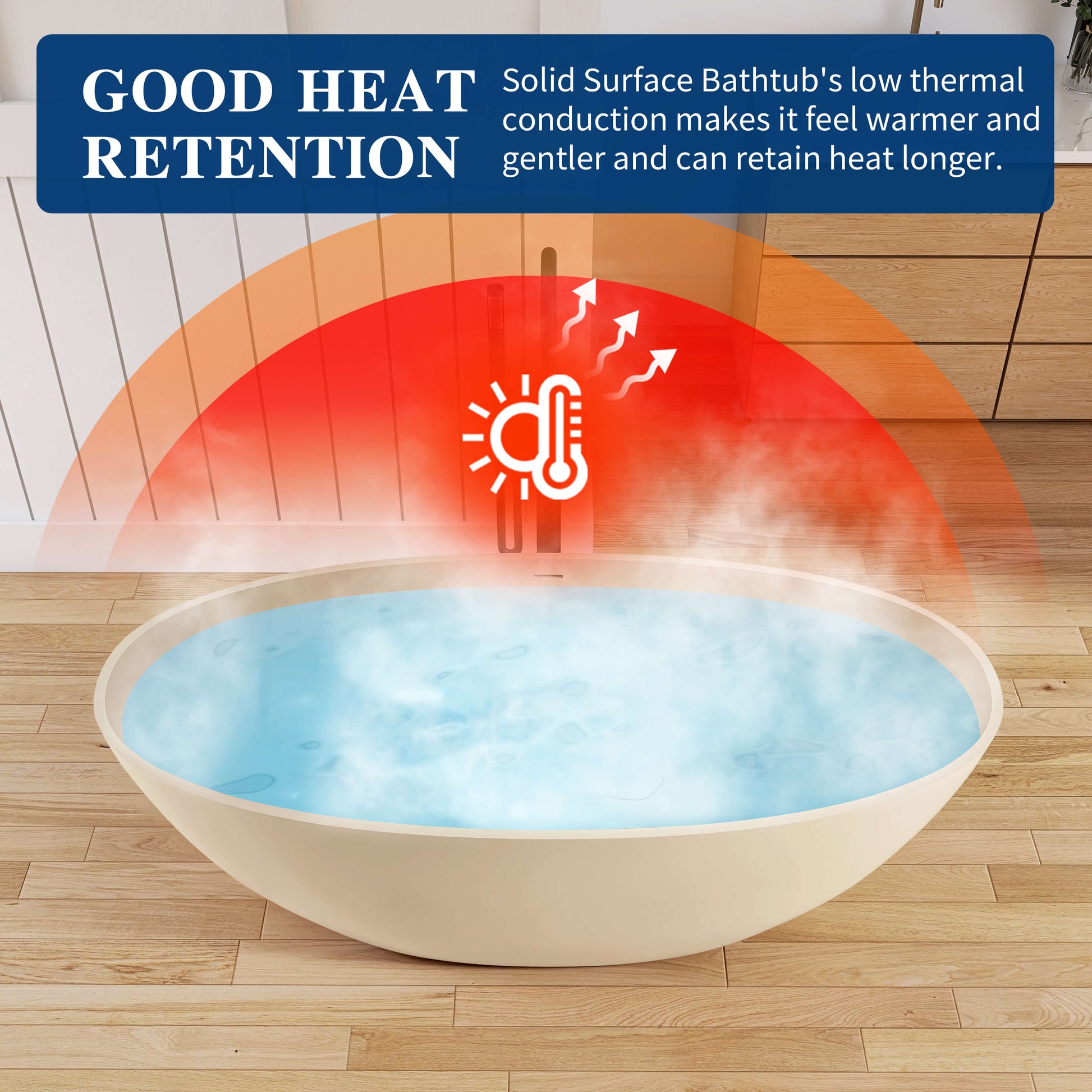 - Super Heat Retention: Ensuring the warmth of your bath water is maintained for an extended period, allowing you to indulge in a long, relaxing soak without the water cooling down too quickly.