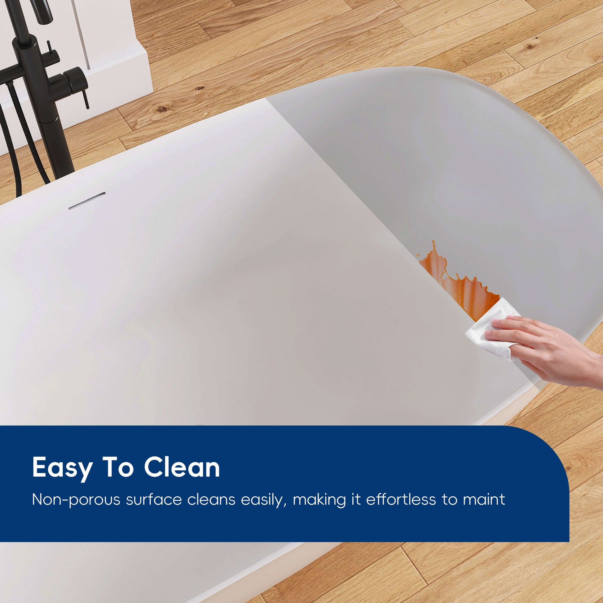 Surprisingly Warm Touch: Engineered stone feels warmer to the touch than cast iron or natural stone, providing immediate comfort as you enter the bath.