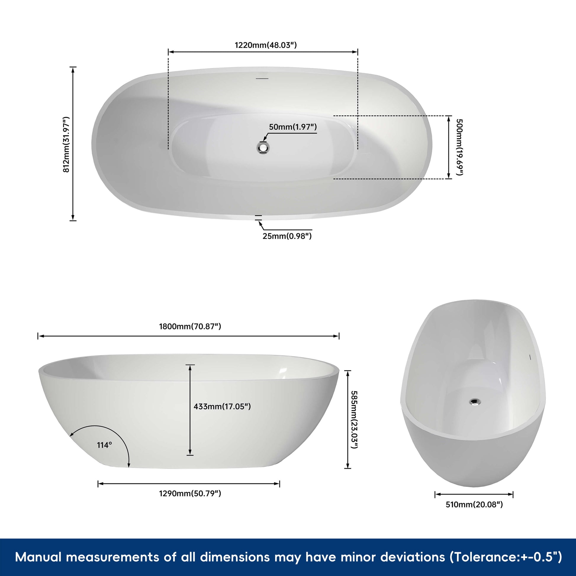 Made from premium acrylic, it offers a silky smooth surface, a soft touch, and is easy to clean and maintain. Its excellent thermal insulation ensures long-lasting warmth during your bath. Its durability ensures the bathtub will last for years.