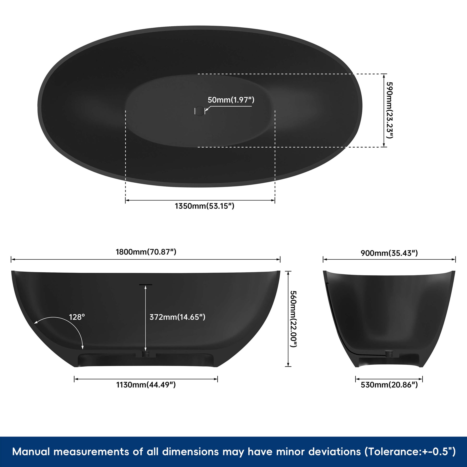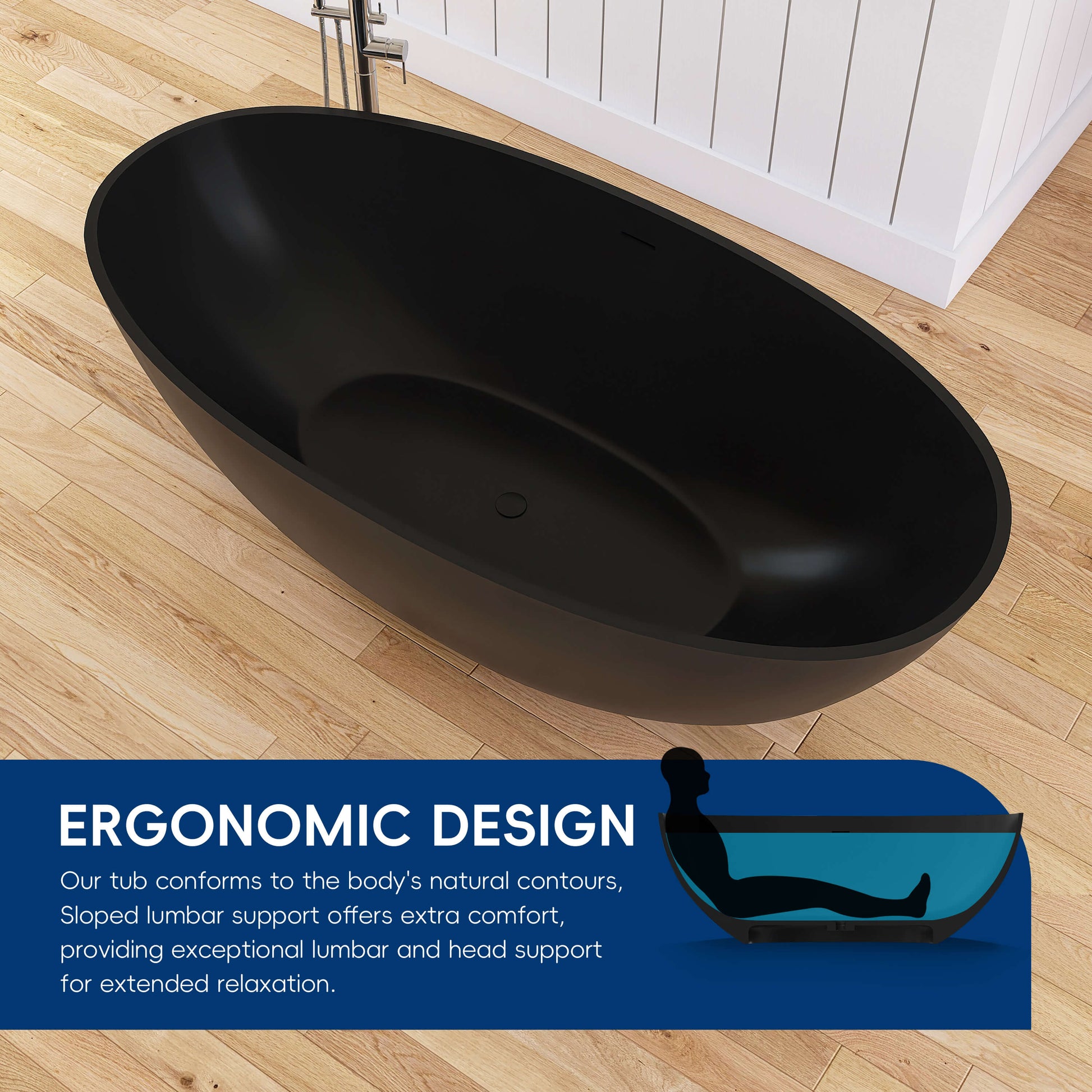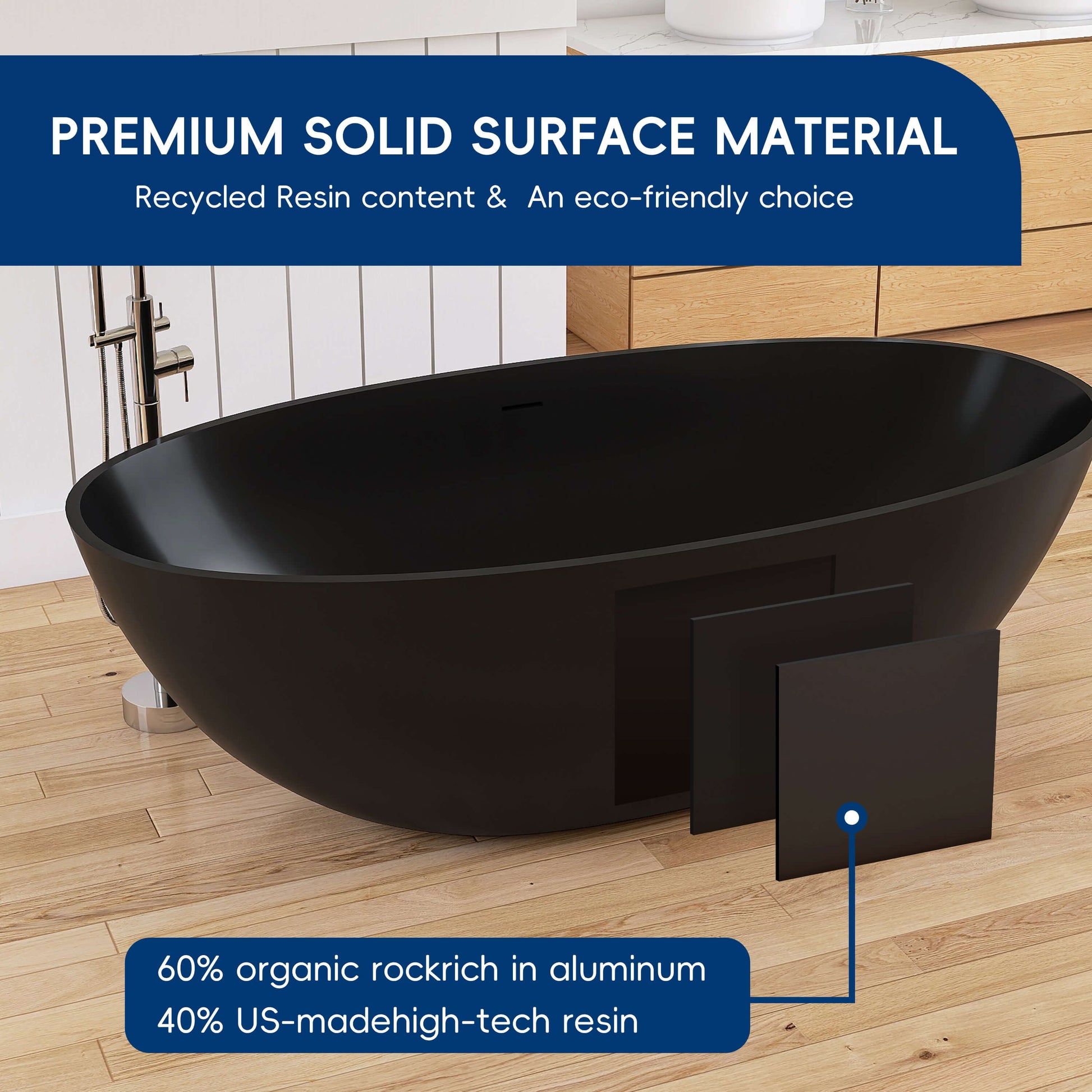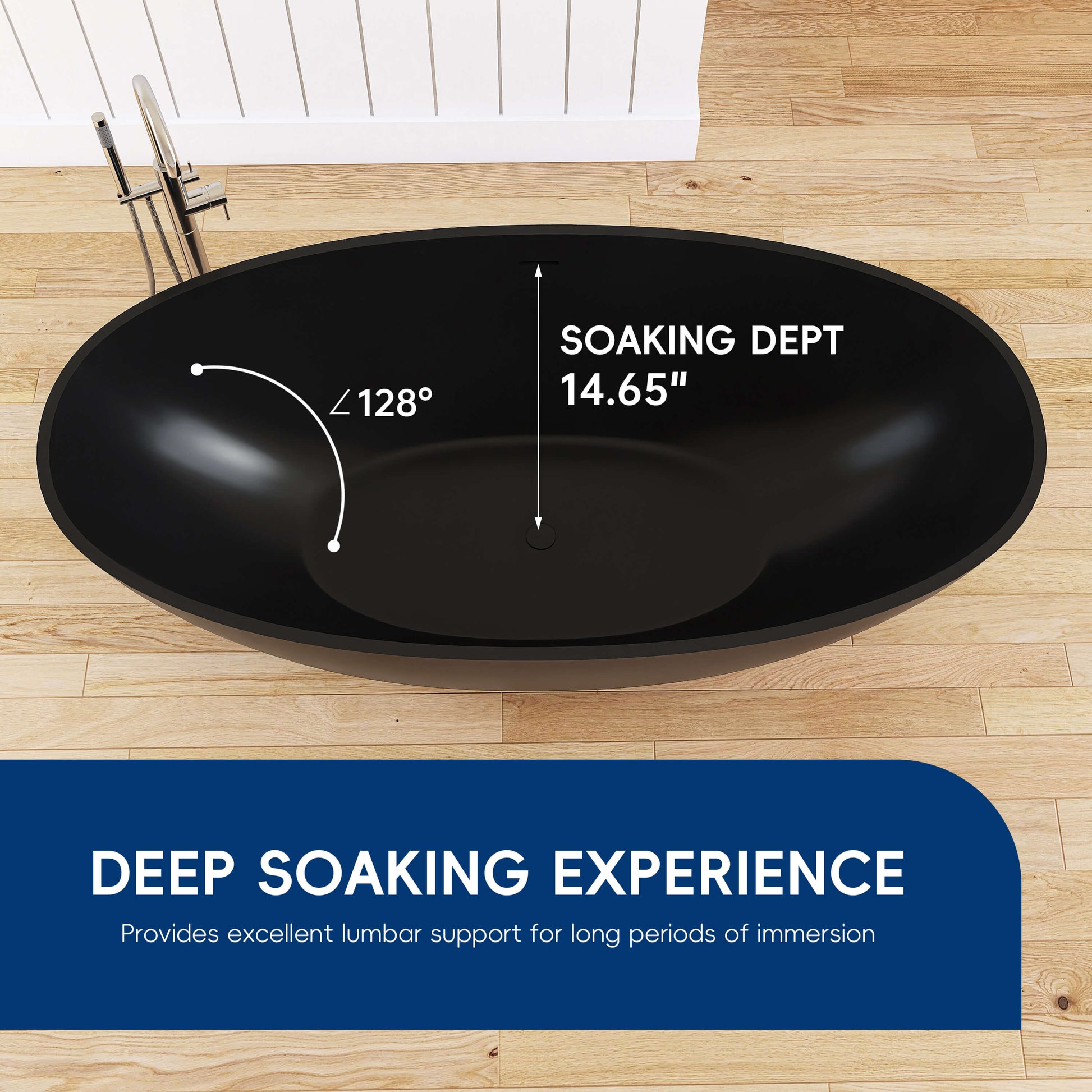 Medunjess 71" Freestanding Soaking Bahtutb Solid Surface Stone Resin Soaking Bathtub,Black