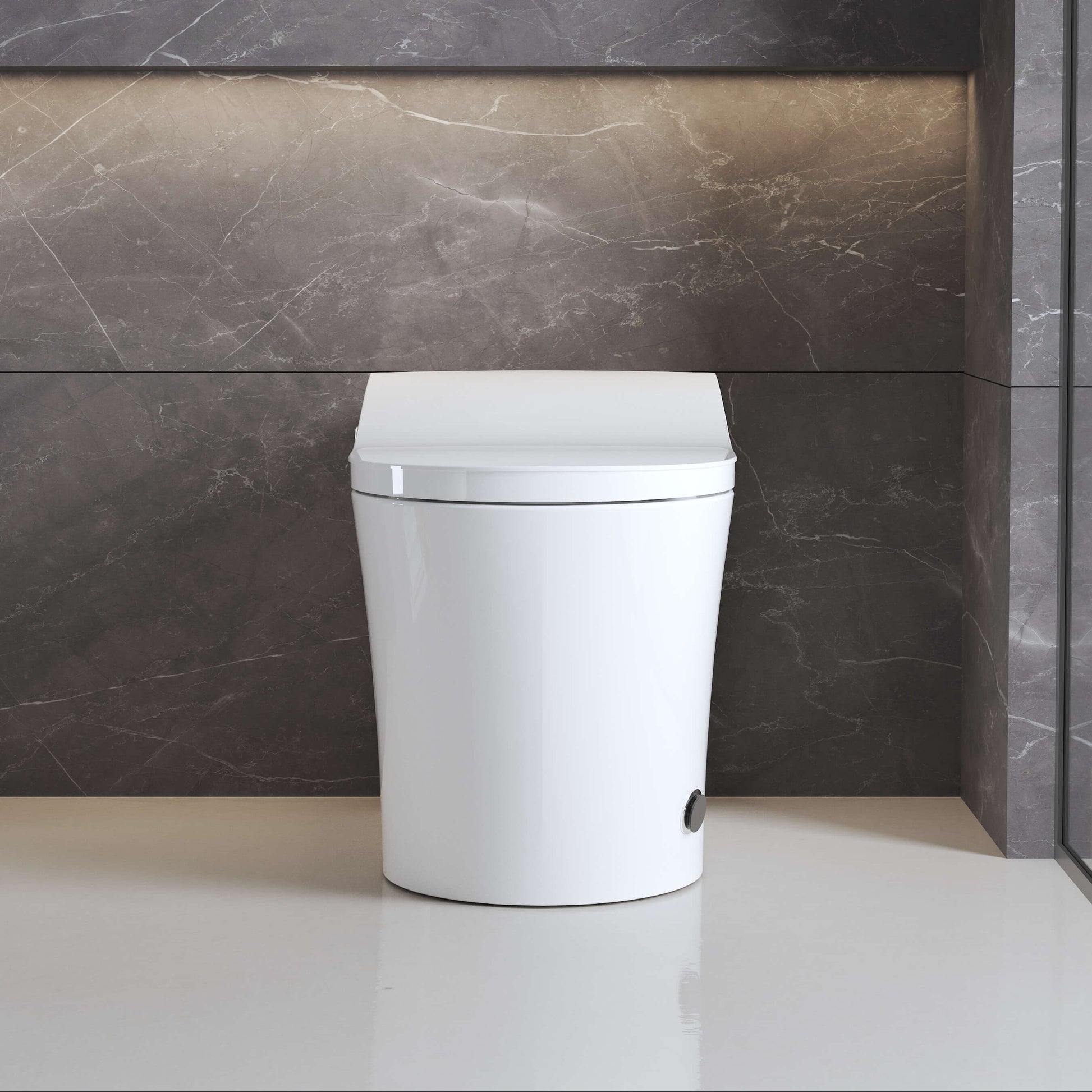 The Model-G Smart Bidet Toilet delivers nano-aerated flushing at 1.34 GPF for powerful, water-efficient cleaning in a durable ceramic build with CUPC/UL-certified ABS cover. Its frequency-conversion heating system provides instant warm water for customizable spa-like washes, adjustable via wireless remote. Enjoy hands-free convenience with foot-sensor flushing, auto open/close lids, and 1-touch nightlight navigation during late-night use. The self-cleaning SS316 medical-grade nozzle with UV sterilization ensures hygienic safety, while smart dormancy, ECO mode, and eleven-fold protection safeguard every interaction. Model G upgrades your routine with 1-touch spa cleansing, intelligent deodorization, and backup power-off flush functionality—engineered for hospital-grade cleanliness and intuitive comfort in modern homes.